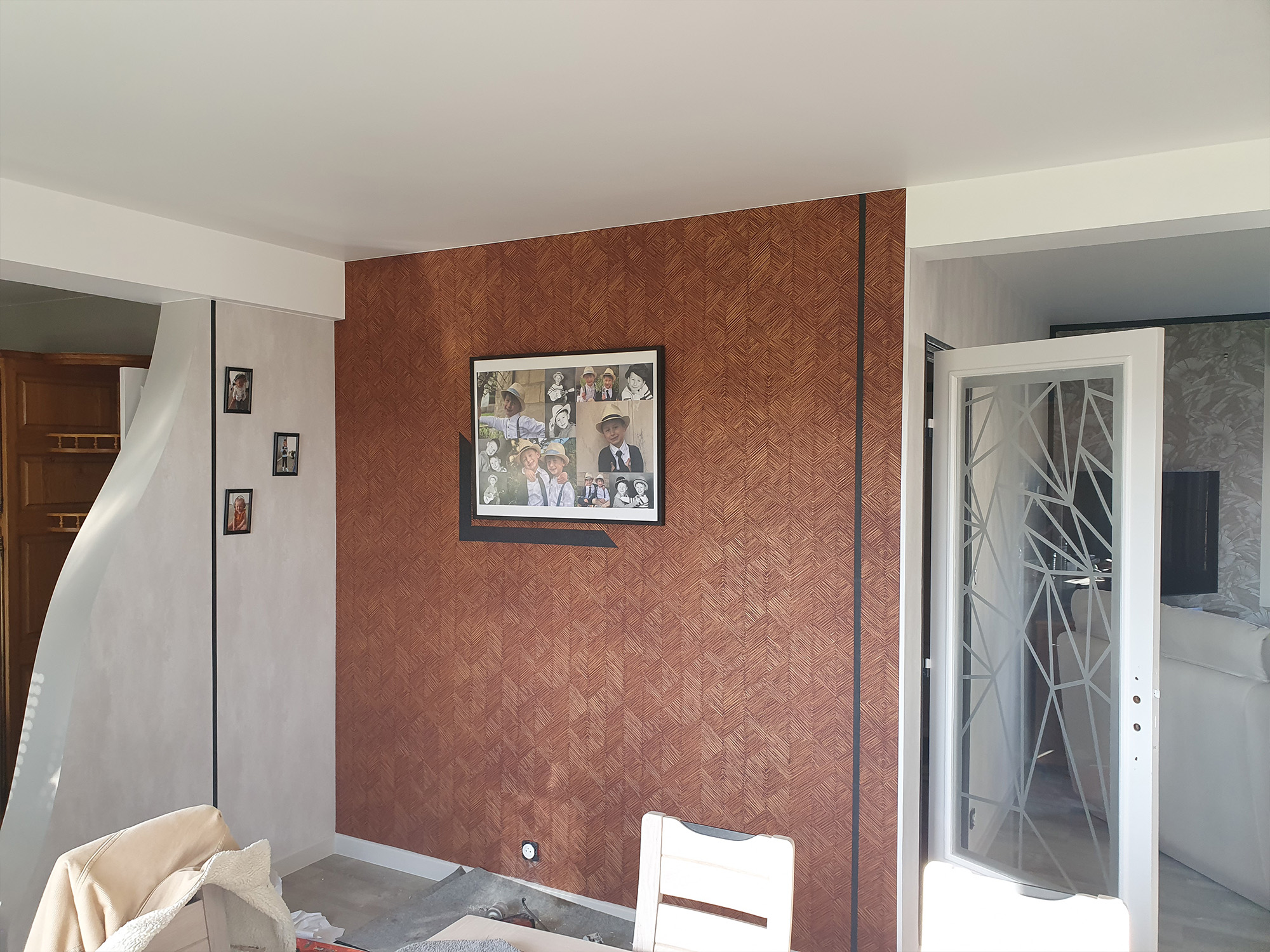 Chez Le Marchand de Couleurs à Villaines-la-Juhel, chaque projet est pensé comme une composition unique : les textures, les motifs et les matières apportent relief, caractère et chaleur à votre intérieur, transformant vos murs en véritables surfaces tactiles et visuelles.